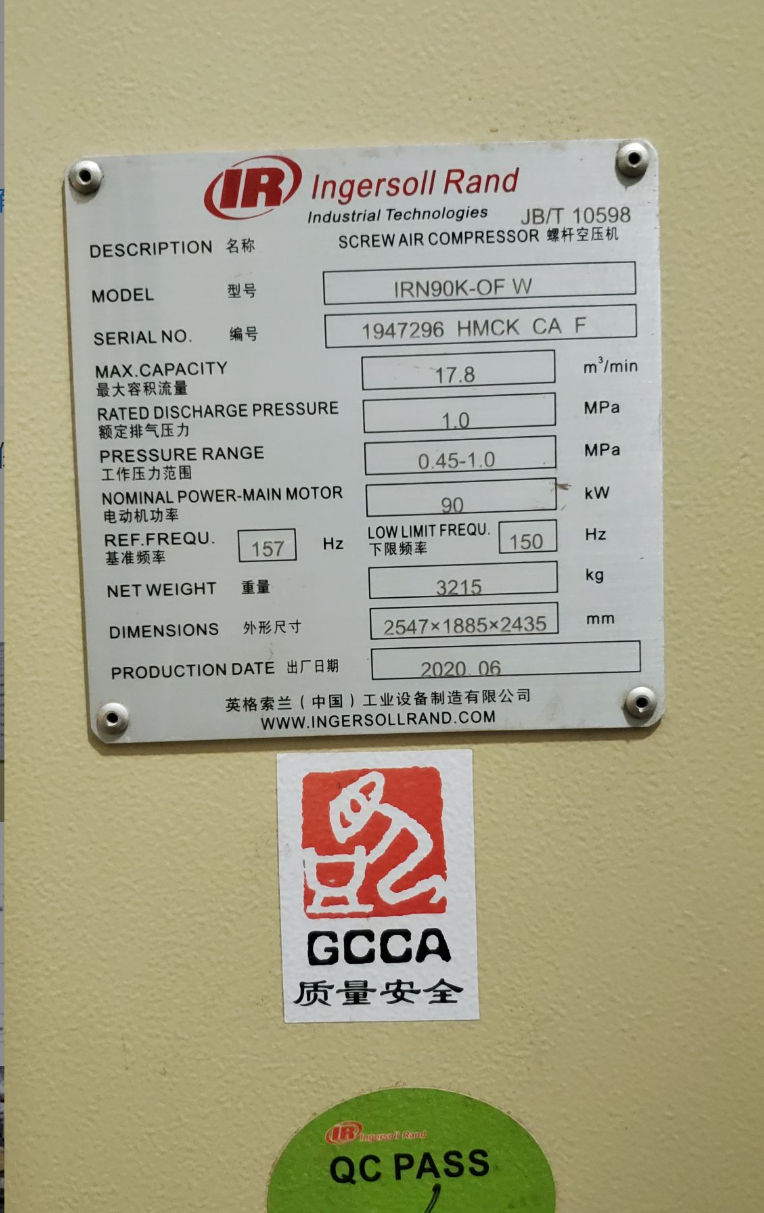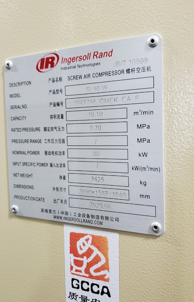 摘要:安裝完成后空壓機銘牌照片